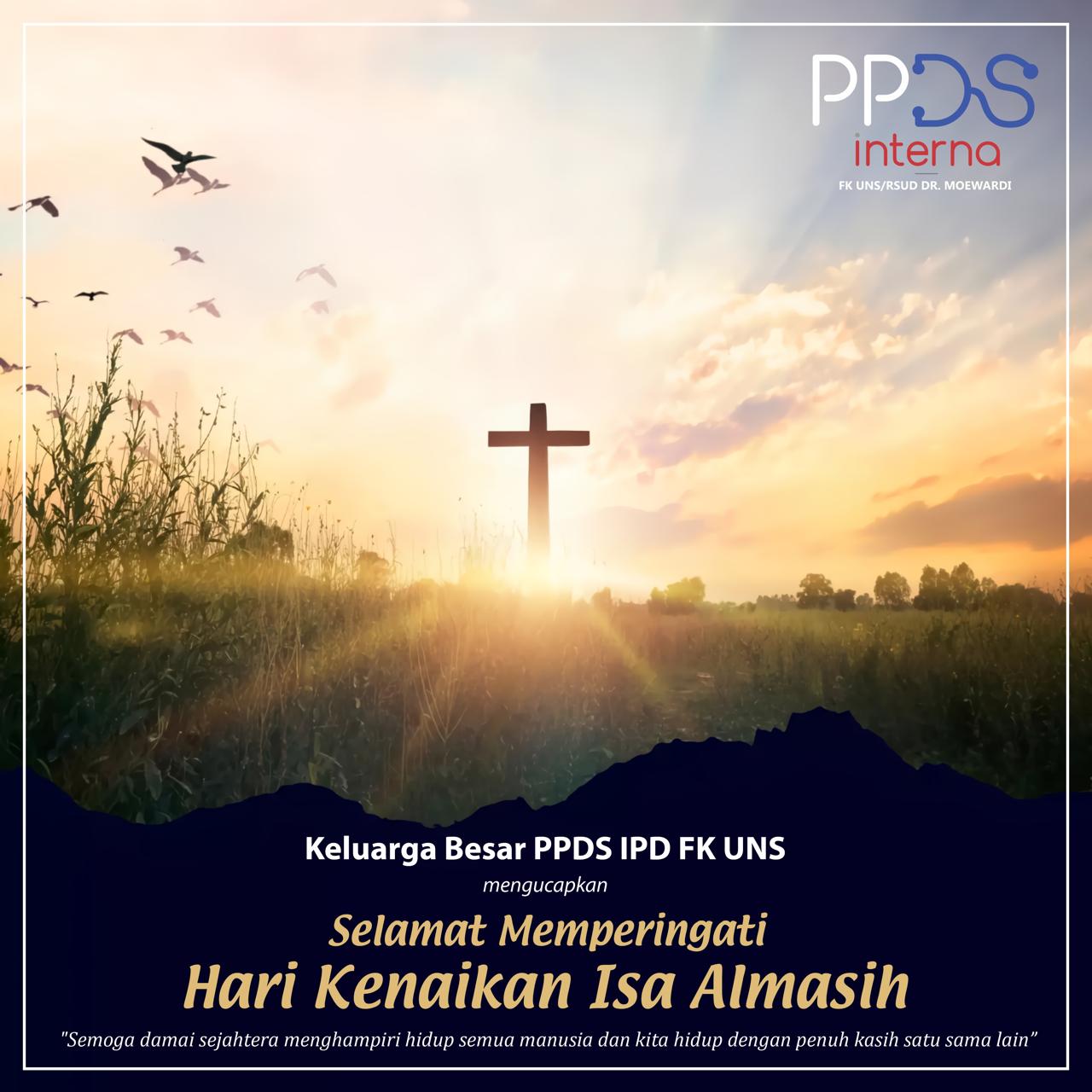 PPDS Penyakit Dalam FK UNS mengucapkan Selamat Hari Kenaikan Isa Almasih. Semoga damai sejahtera menghampiri hidup semua manusia dan kita hidup dengan penuh kasih satu sama lain.